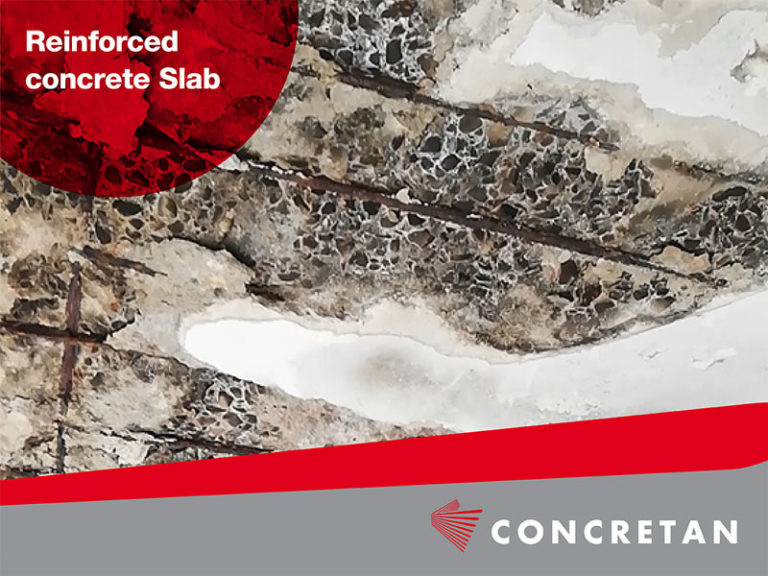 The retrofit design of the slab was based on utilization of fine Polymer Modified High Performance Concrete, http://www.tectaconcrete.com/el/beton-konies-poly-ypsilis-antoxis, to restore the section of the Slab after the removal of the damaged concrete parts. The technique provided for the use of concretan board , https://www.concretan.com/portfolio/conetan-board/ as permanent shuttering and at the same time as insulation of the slab.